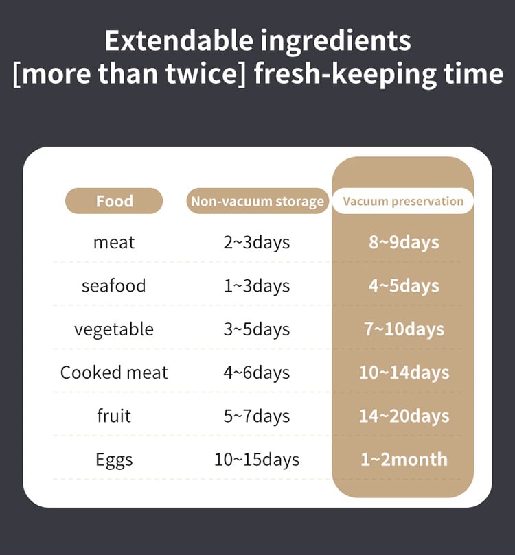 Experience 60Kpa powerful suction that seals in just seconds. Choose between high-pressure for dry foods and gentle vacuuming for moist ingredients.